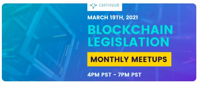 Continuum Market and Kristina Bruhahn present #ContinuumBlockLegs March Blockchain Legislation Summit, the global virtual summit monthly meeting series with upcoming dates kicking off Friday, March 19th, aims to foster U.S. State & Federal Bipartisanship and Global Cross-Border policy discussions and consensus to create safe harbors of commerce in blockchain.